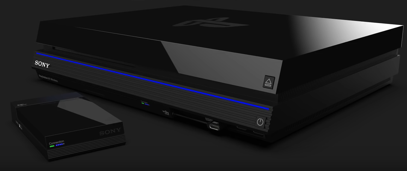 حسب ما جاء في شرائح العرض فقد تم استوحاء شكل الجهاز من البلايستيشن 4 كما تشاهدون في الصورة بالاسفل بينما ازرار التشغيل و اخراج القرص و الحواف البارزة في الواجهة الامامية للجهاز فقد تم اقتباسها من البلايستيشن 2 و لكن يبقى الشكل اولي و قابل للتغير عند الاصدار.